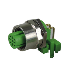 Connettore Femmina M12 per Montaggio su Pannello PCB, Tipo ad Angolo Retto, 4 Pin, Codifica A